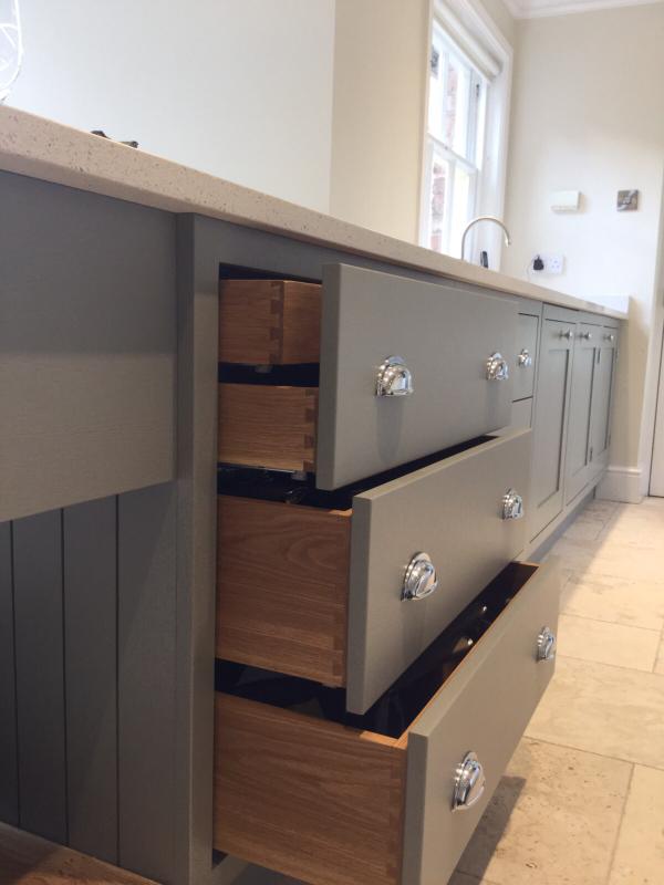 All Kitchens are bespoke and are therefore made to measure and therefore will fit into any desired space. Each Kitchen is made to your own requirements and preference, be it plywood carcasses, soft close hinges, dovetailed drawer boxes, integrated appliances or pull out fitments.